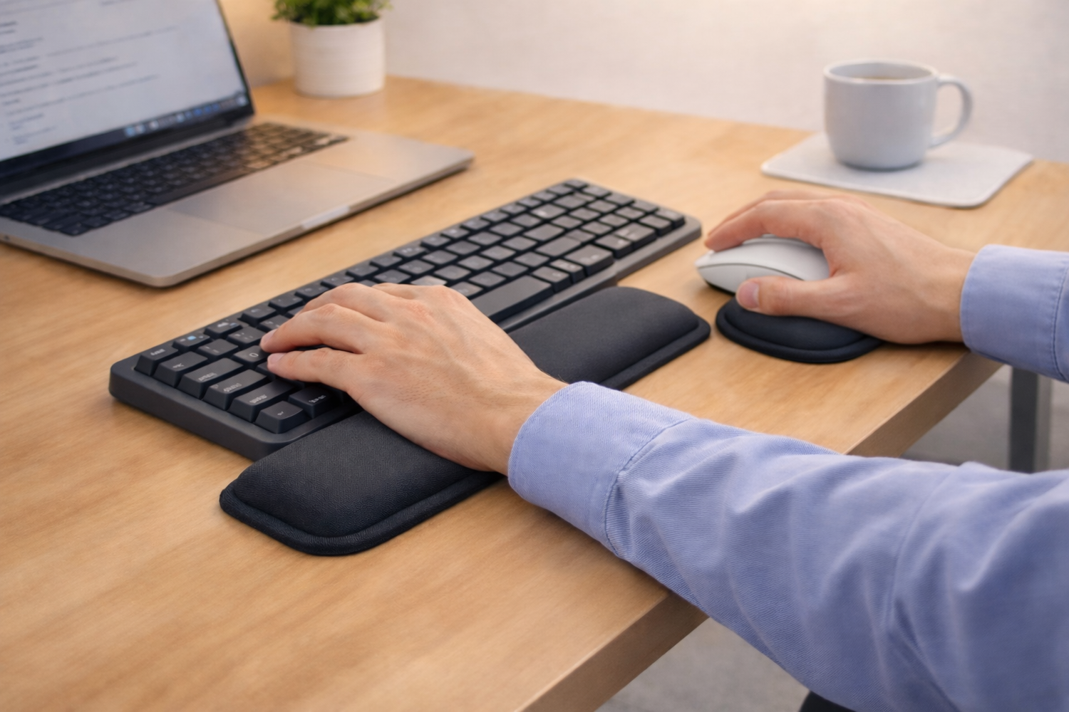 Shaped to align naturally with keyboards and mice for smooth hand movement and comfortable positioning.